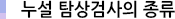 누설검사의 종류는 여러 가지로 나뉘어지는데 이중 가장 대표적인 검사 방법 으로는 다음과 같은 방법이 있다.